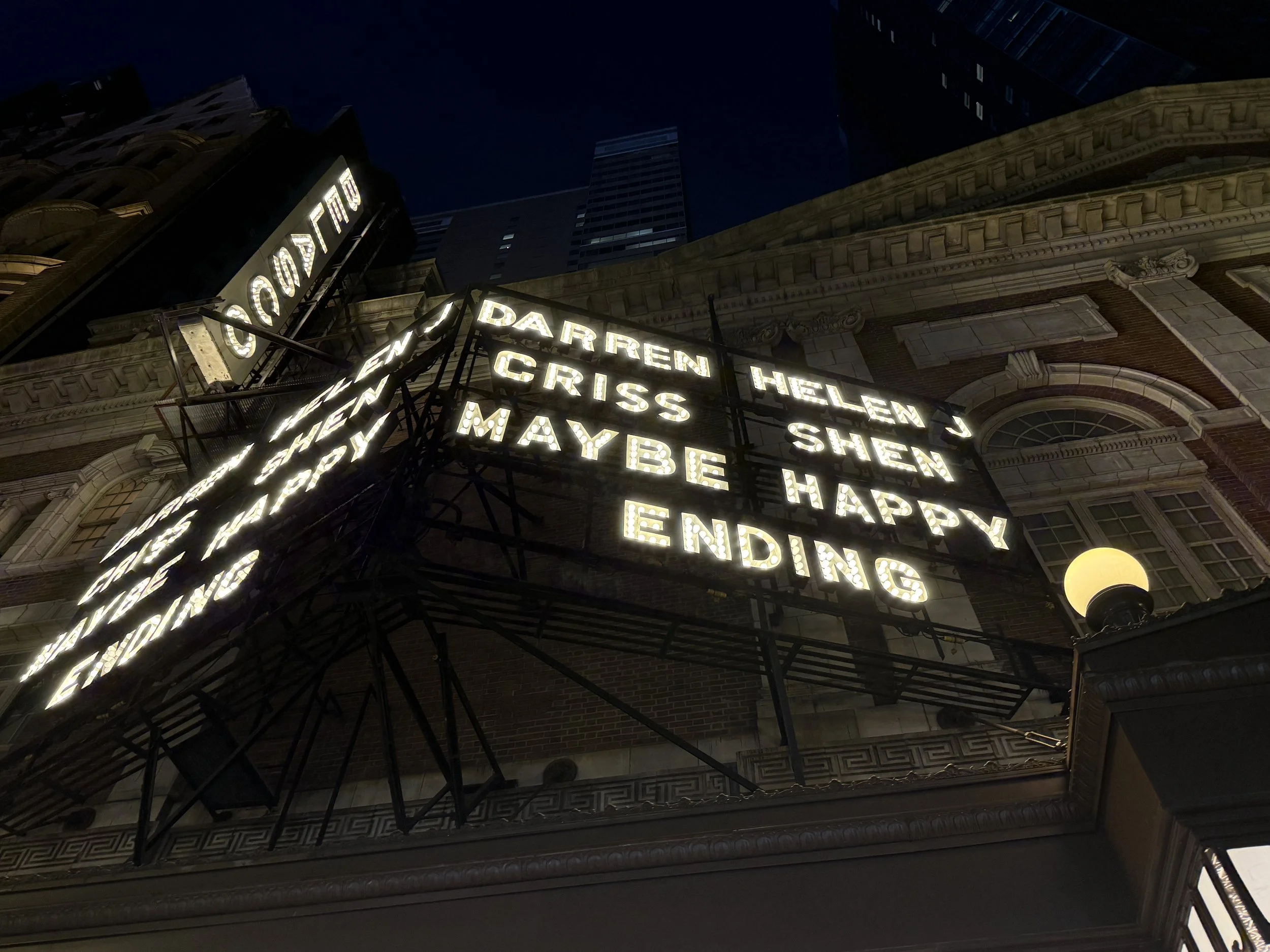 With about 25 minutes to get from John Oliver to the Belasco Theater, we made it just in time to see Darren Criss and Helen Shen in the Tony winning Maybe Happy Endings!