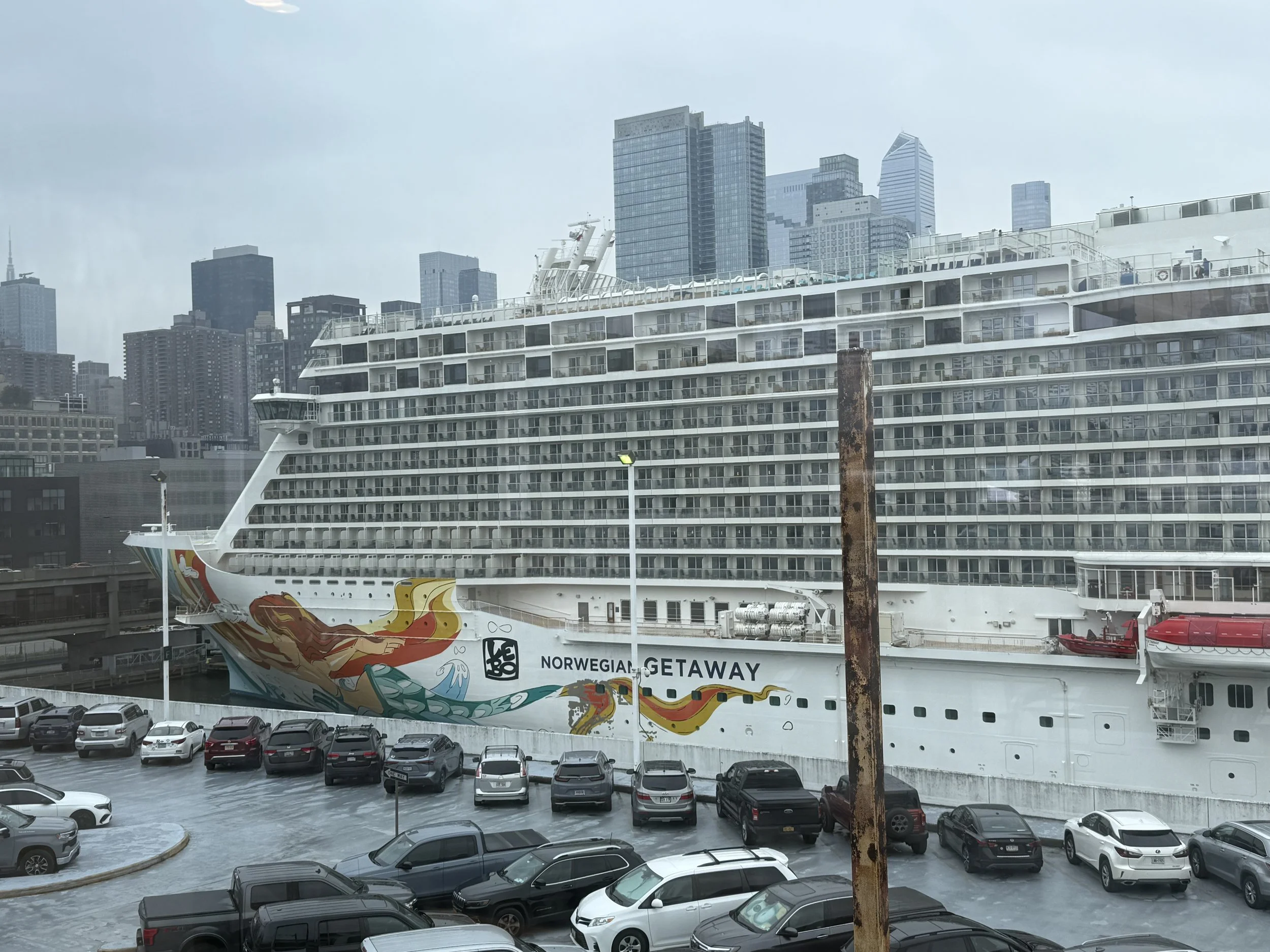 Our neighbor ship the NCL Getaway. We sailed on her with Sophie back in 2017. The Getaway is 156,300 tons with 3571 passengers, vs the Neptune's 47,800 tons and 930 passengers! I do love a smaller ship!