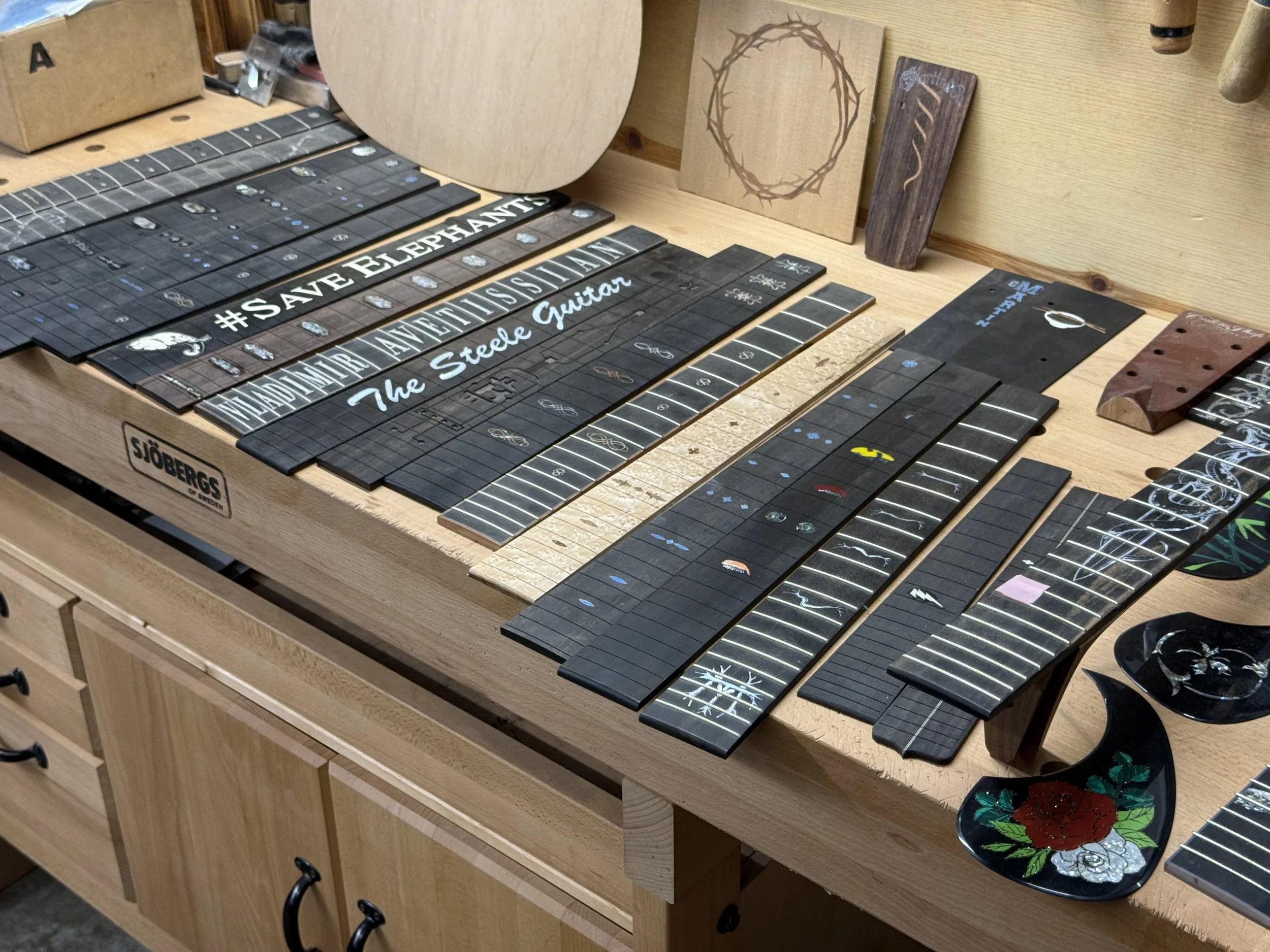 The custom shop is where all the extra fancy work is done on the necks, bodies, and pick guards.