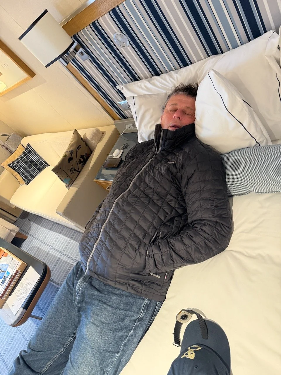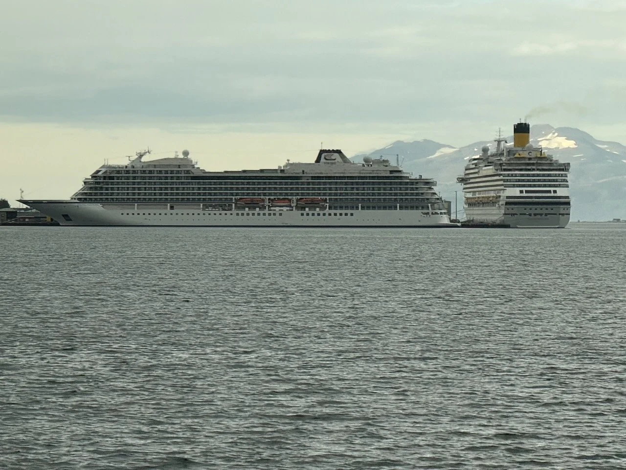 Little waterfall right outside our cabin while in port! While cruising out of the fjord this evening we saw our first humpback whales!