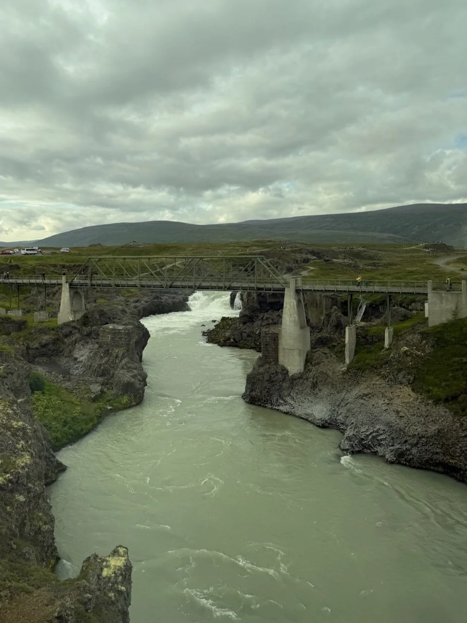 This is the river flowing below the Godafoss falls. We were able to see the falls on our way back to the ship but didn't get to stop.