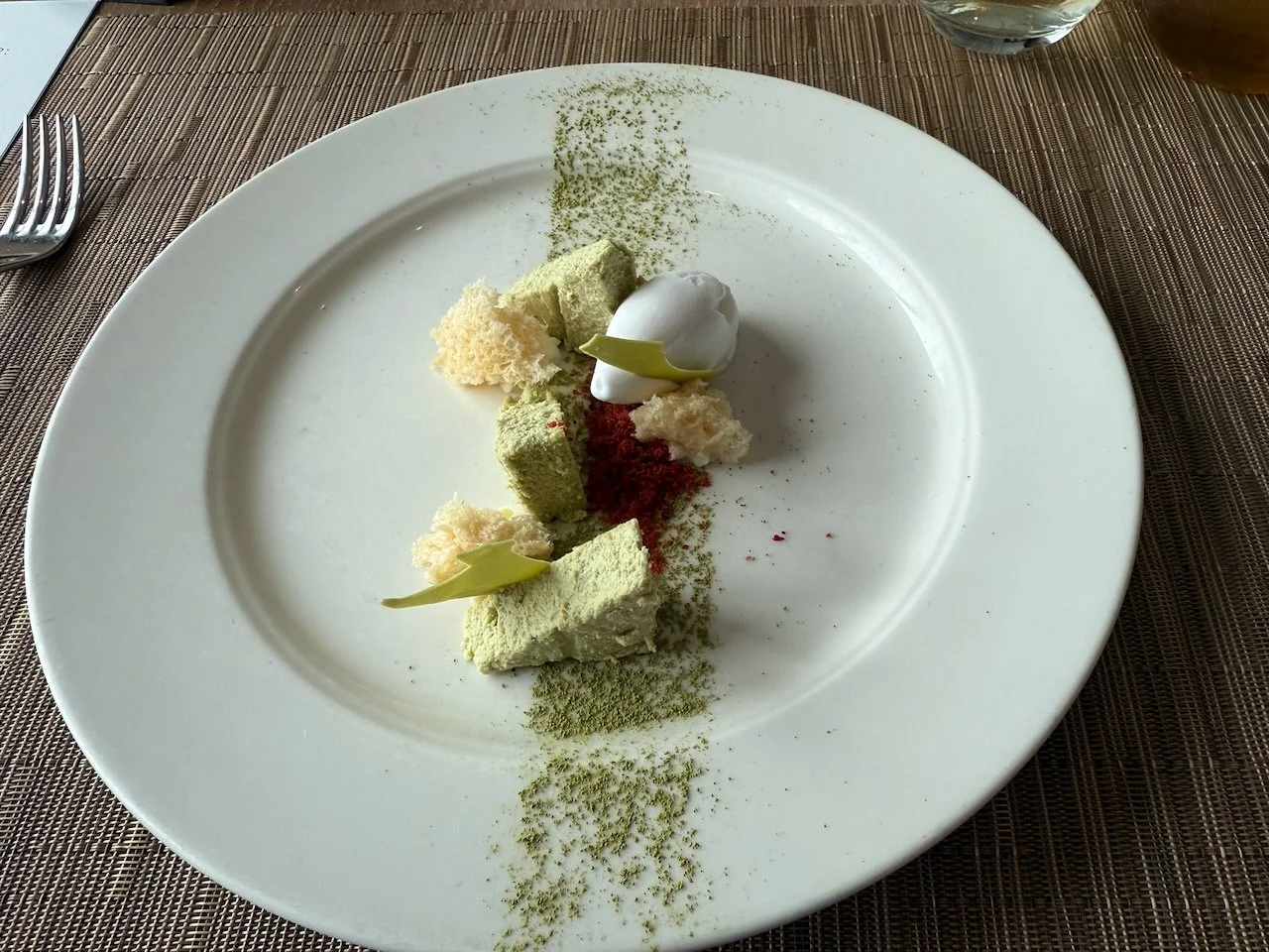 matcha cheesecake, yuzu ice cream