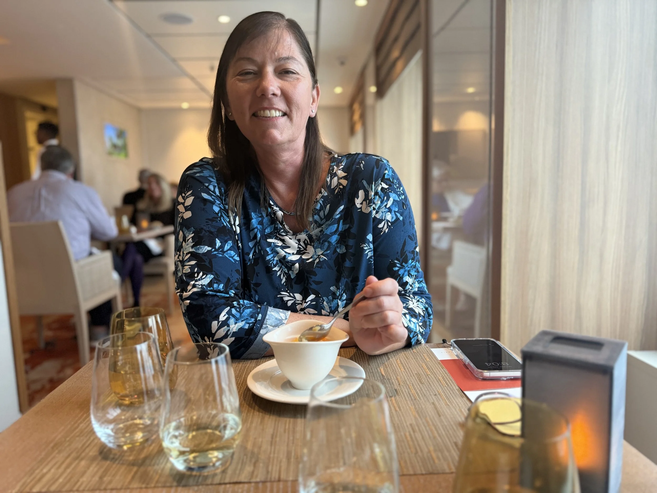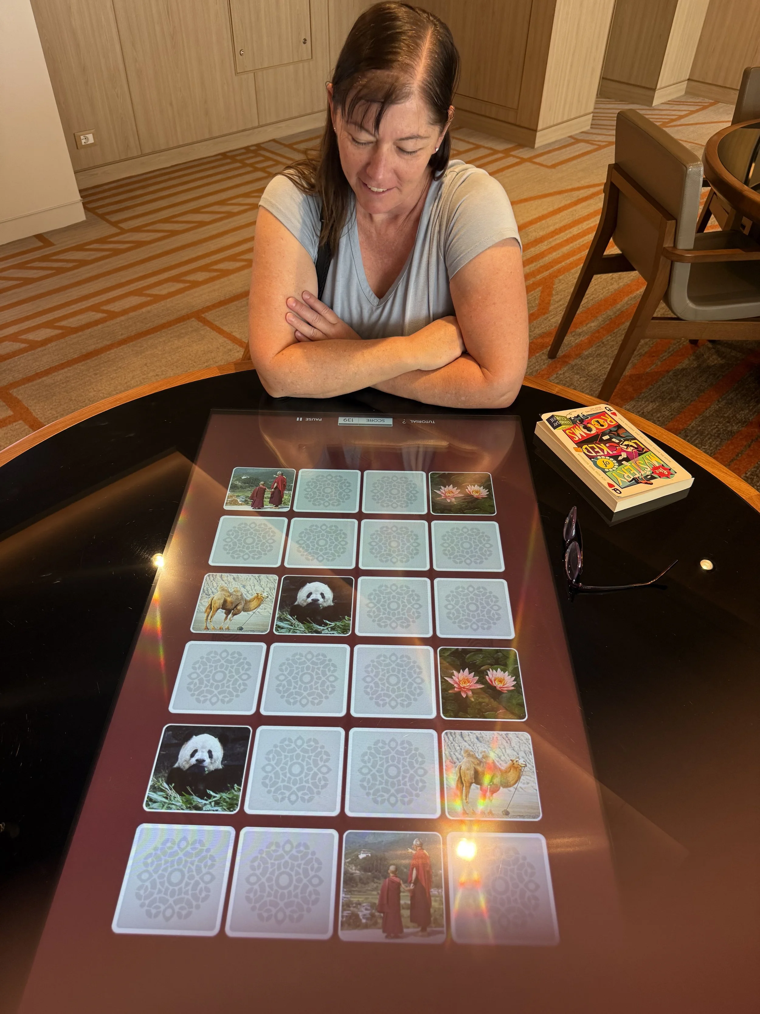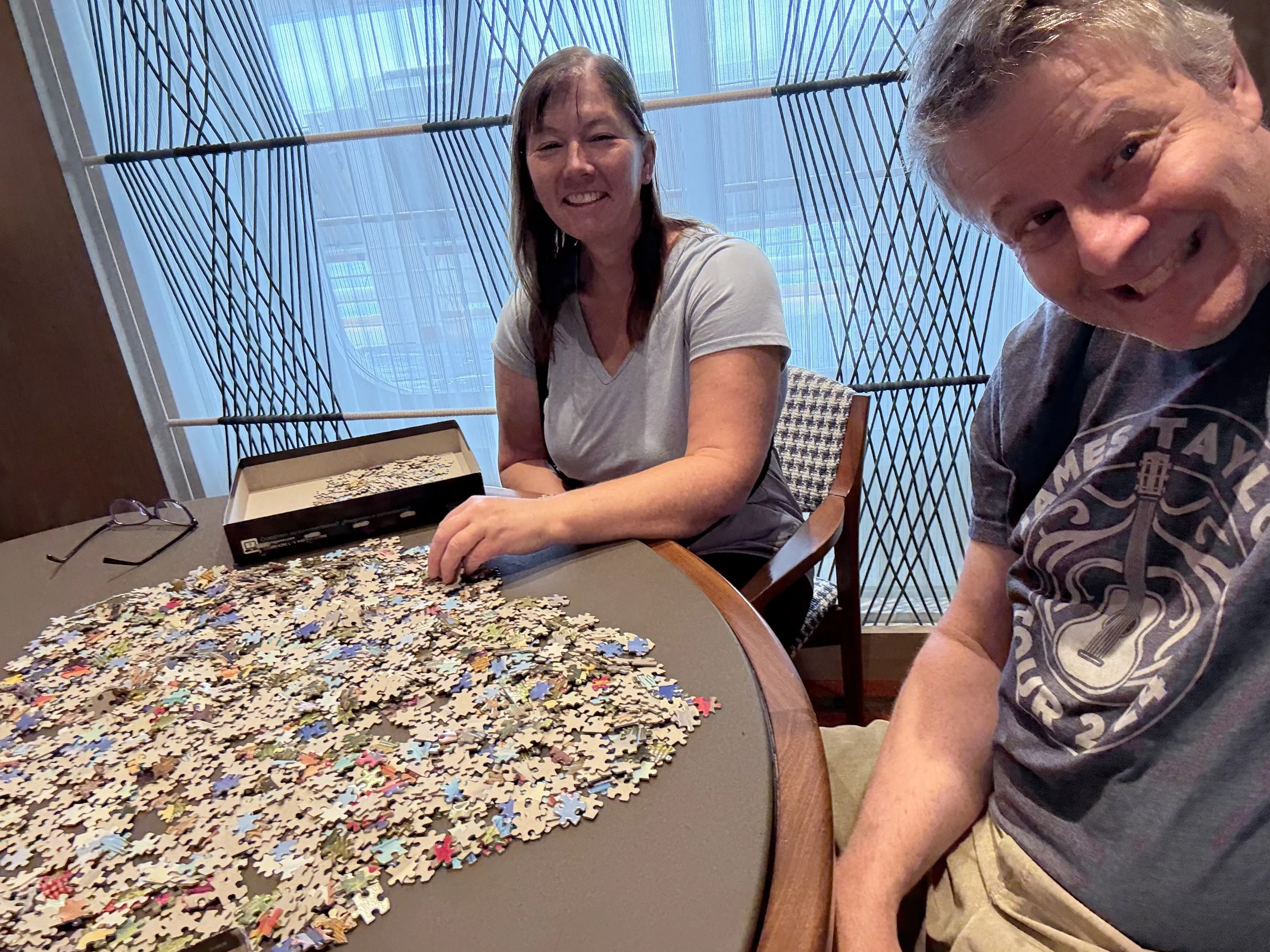 Our first day at sea was all about playing games! Before setting sail, we were sent clues for a fun scavenger hunt that Steve’s former co-worker left for us when he and his wife sailed the same itinerary back in May. We enjoyed views from the deck and spotted a some dolphins.