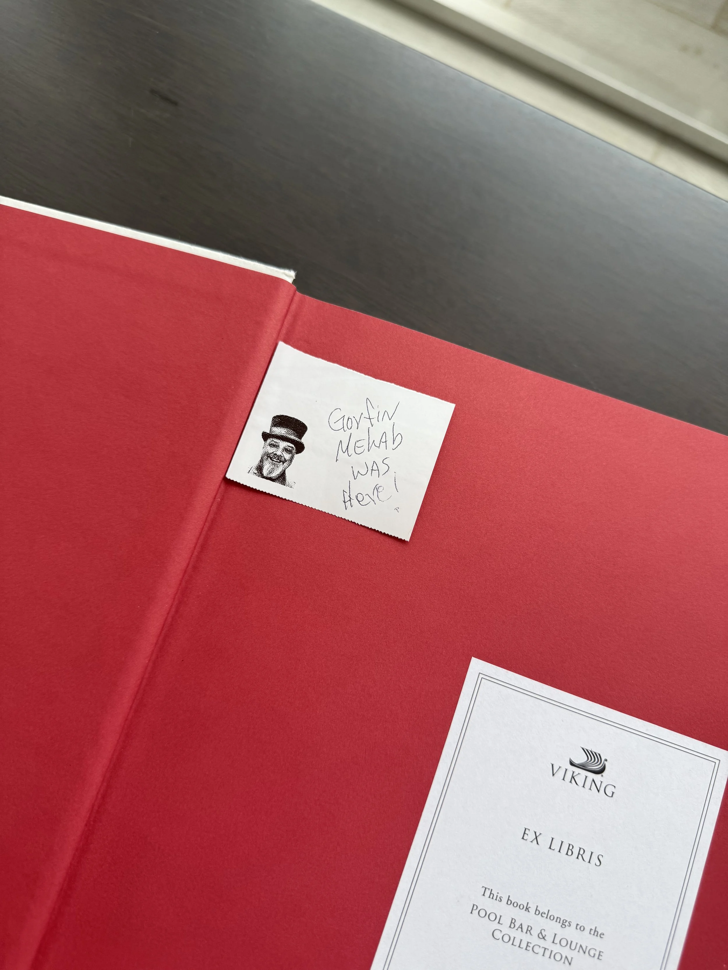The first clue was- "This is a good place to hide a message for you to seek" There was a picture attached of the pool area. We found this book there.