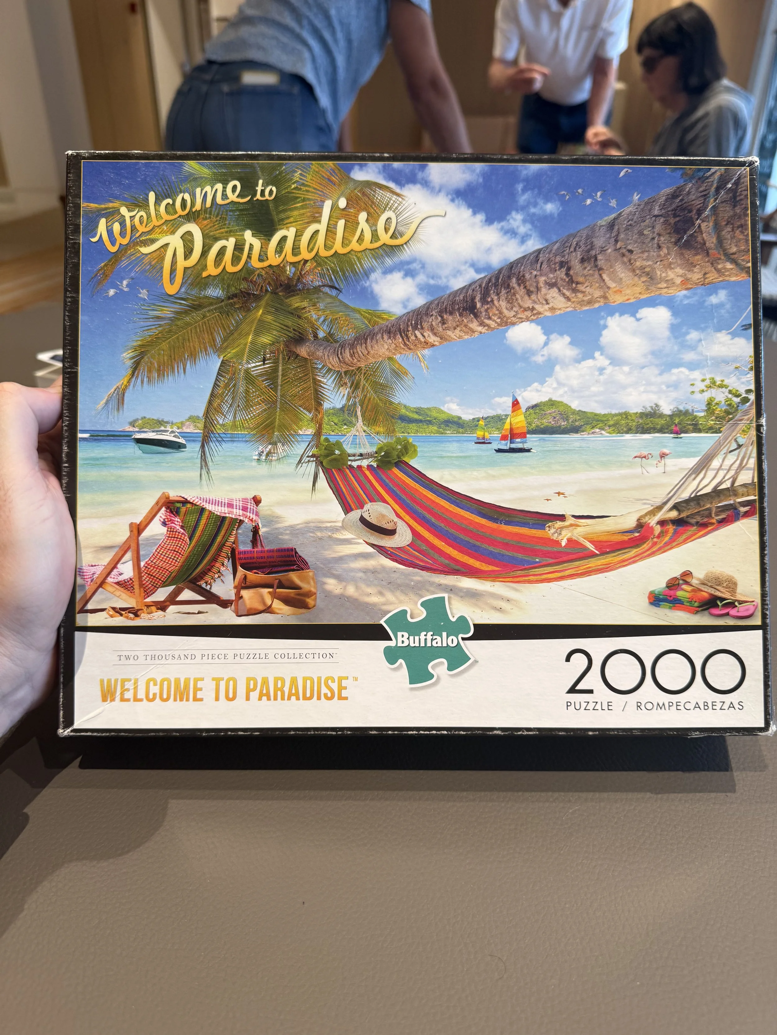 Not seeing any notes, so we looked at the backs of all 2000 pieces, sadly no message. Found out we had the correct puzzle but the slip of paper he left for us had been removed.