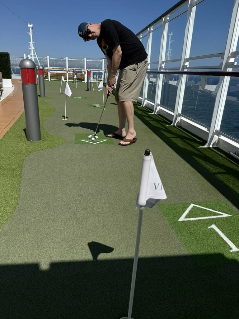 Tried our hand a lawn bowling, which is not easy on a rocking ship!