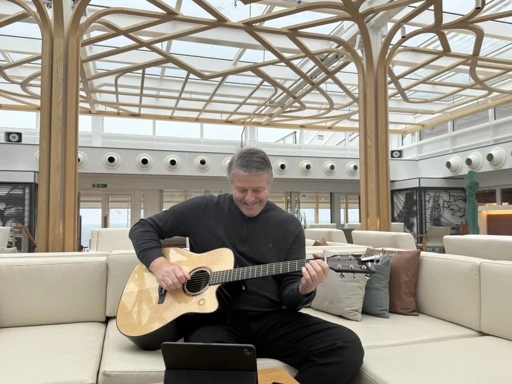 Back Day 6 - August 1Sail the Labrador Sea Day 6 was a cloudy day at sea. We spent a lazy day, reading, eating, & enjoying the spa. After dinner Steve took his guitar up to the Wintergarden and played for the 4 lucky passenger who came in to play cards while we were there. Slide 1 Slide 1 (current slide) Slide 2 Slide 2 (current slide) Slide 3 Slide 3 (current slide)