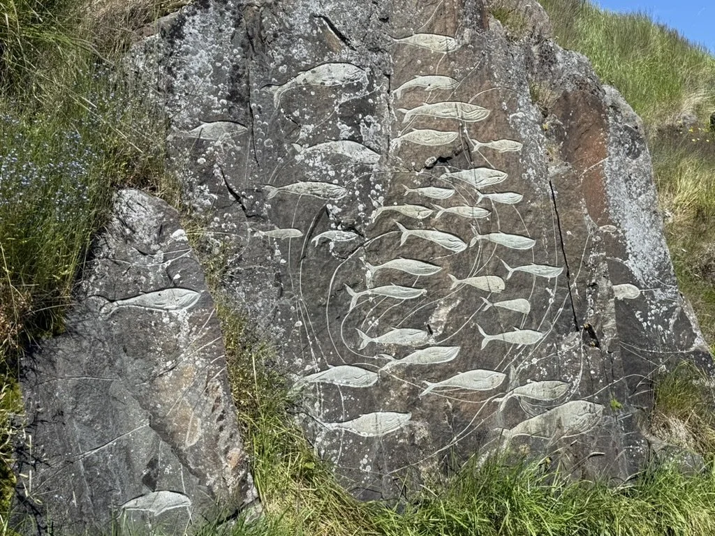 Qaqortoq has an outdoor art installation called Stone & Man. It was initiated by Greenlandic artist Aka Heegh in the 1990’s. Over 40 rocks and boulders around town have been carved by Nordic artist from Greenland, Iceland, Norway, Sweden and Finland.
