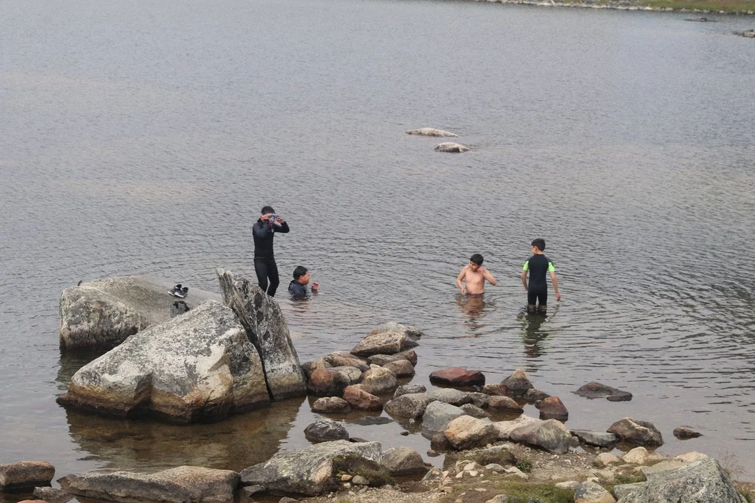 We also saw several boys with and without wetsuits, jumping and swimming in the lake. It must have been cold, the air temperature was around 50 degrees. Bu they were having a great time